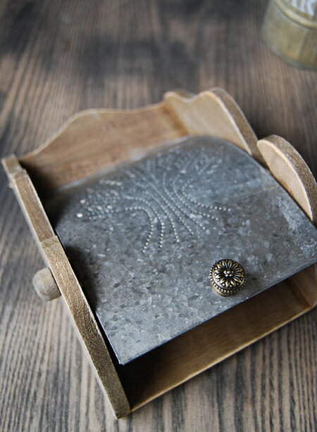 ブリキ・トイレットペーパーホルダー【トイレット・ペーパーホルダ-】価格: 1,050円レビュー評価: 5.0 レビュー数:4 サイズ:W220 H150mm材質:ブリキ・木ビスは付属しておりません。とっても珍しいブリキのペーパーホルダー。カントリーテイストがお好きな方に是非お勧めです!素朴な感じがありながらも、可愛い模様が施されています。ポチっと付いたつまみもポイント! |