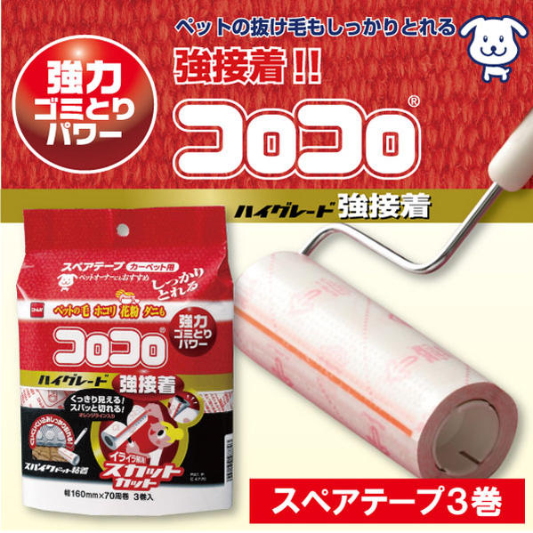 コロコロスタンダードSポイント10倍【10P24Nov09】【tm】【P5】価格: 819円レビュー評価: 4.0 レビュー数:1 使いやすさにこだわったコロコロスタンダード。すじ塗り粘着加工により、カーペットの中まで入り込み、ゴミはもちろん、髪の毛・花粉・ダニを取ります。またカーペットを傷つけません。特殊ミシン目は、切りやすく最後までしっかり使えます。テープの端は、粘着加工していないので、めくりやすい設計。手も汚れません。出し入れ簡単なワンタッチ開閉ケース付き。取り出すときも片付ける時も立ったままで開閉できます。 ■仕 様 サイズ 本体:全長295mm付属テープ:幅160mmx90周巻 材質 テープ:すじ塗り粘着加工紙シャフト:スチール(クロームメッキ)グリップ・ケース:ポリプロピレン ※スペアテープ3巻入はコチラ! ※ |